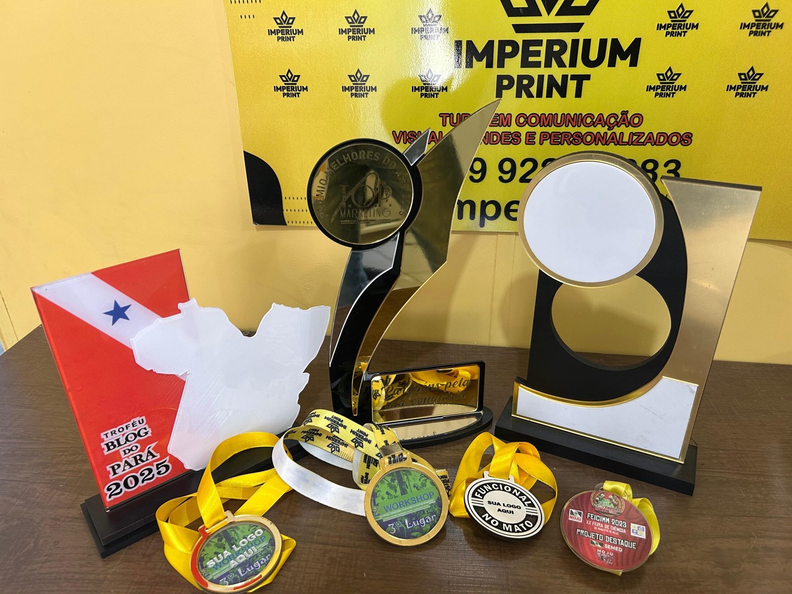 Criamos troféus e medalhas exclusivas para eventos esportivos, empresariais, escolares ou comemorativos. Designs personalizados, duráveis e com acabamento premium.